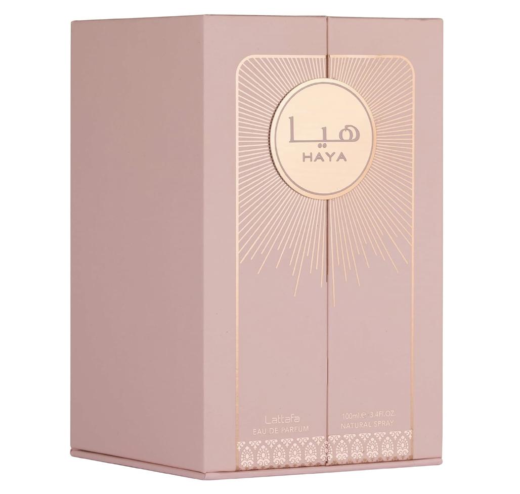 Lattafa Haya Eau de Parfum 3.4 oz is a delightful blend of citrus, fruity, floral, and woody notes. The top notes open with a burst of bright and zesty citrus, followed by a juicy and succulent fruitiness. The heart of the fragrance features a romantic bouquet of rose and other floral notes, adding a soft and feminine touch to the scent.