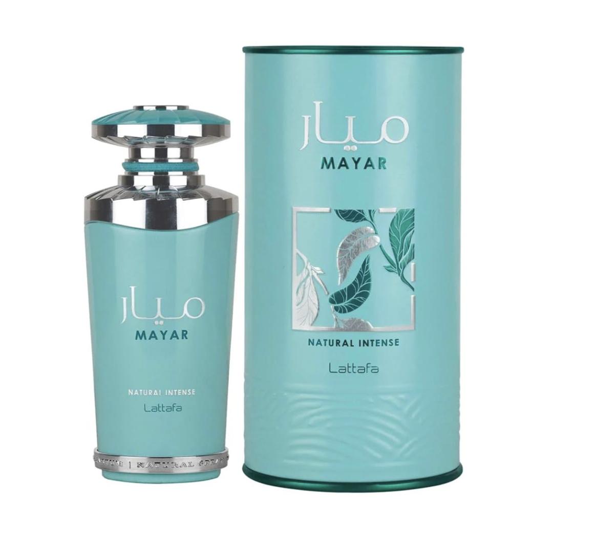 Mayar Natural Intense by Lattafa perfumes is a fragrance for women. This is a new fragrance. Mayar was launched in 2023. Top notes are fig, green tangerine, coconut water and melon; middle notes are water lily, jasmine and lotus; base notes are vanilla, sandalwood, ambroxan and musk.