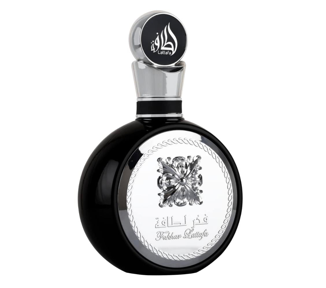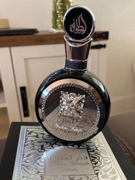 Fakher Lattafa highlights a fougere – woody union along with elegant notes of violet leaf, masculine nutmeg and bergamot. The heart accentuates clary sage, tart geranium and orange blossom finely spiced with coriander, while tonka, patchouli, vanilla and sandalwood linger in trail, which attract our attention with strong creamy shades.