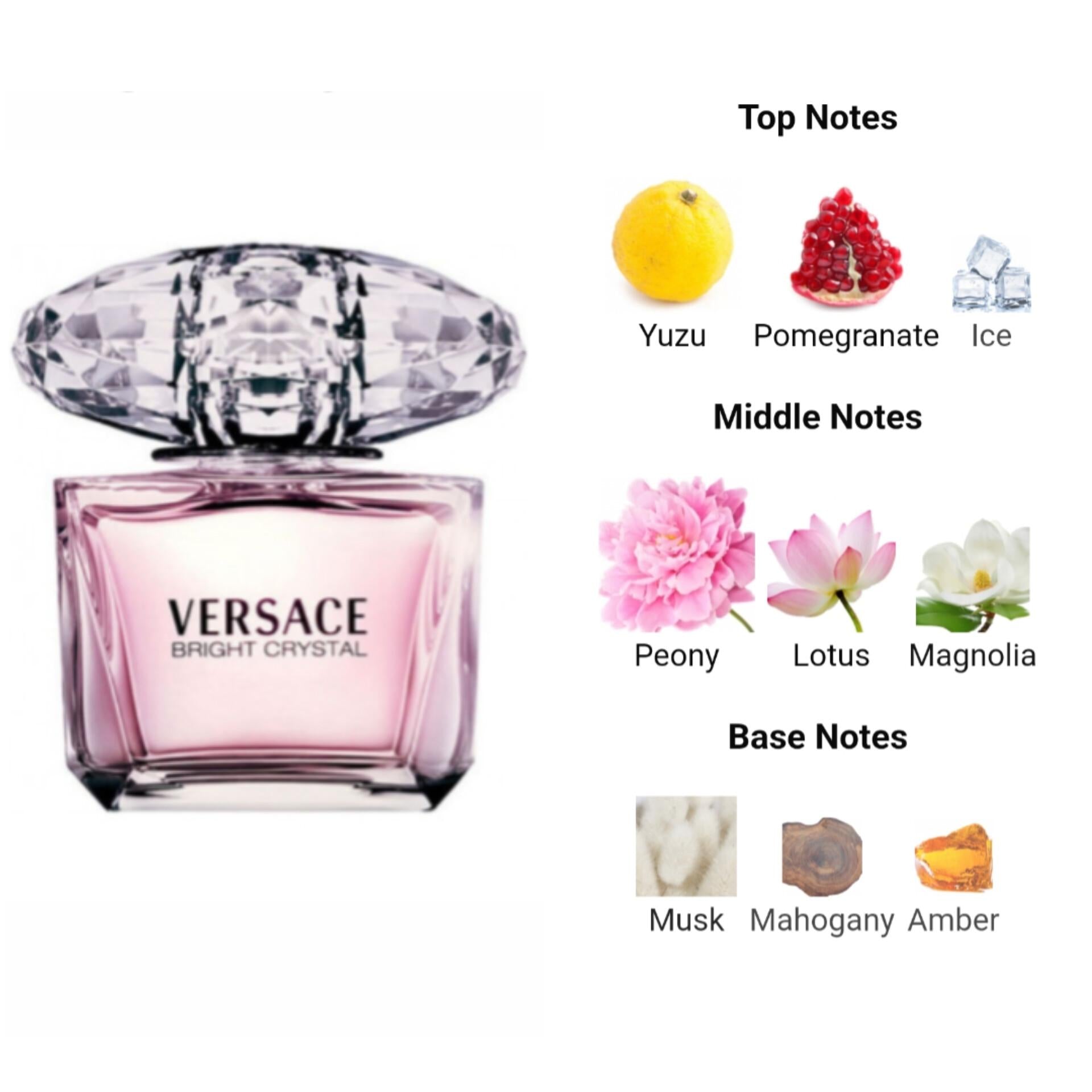 This elegant perfume opens with a refreshing burst of pomegranate and icy accord, followed by the delicate, soft heart of peony, magnolia, and lotus flower.